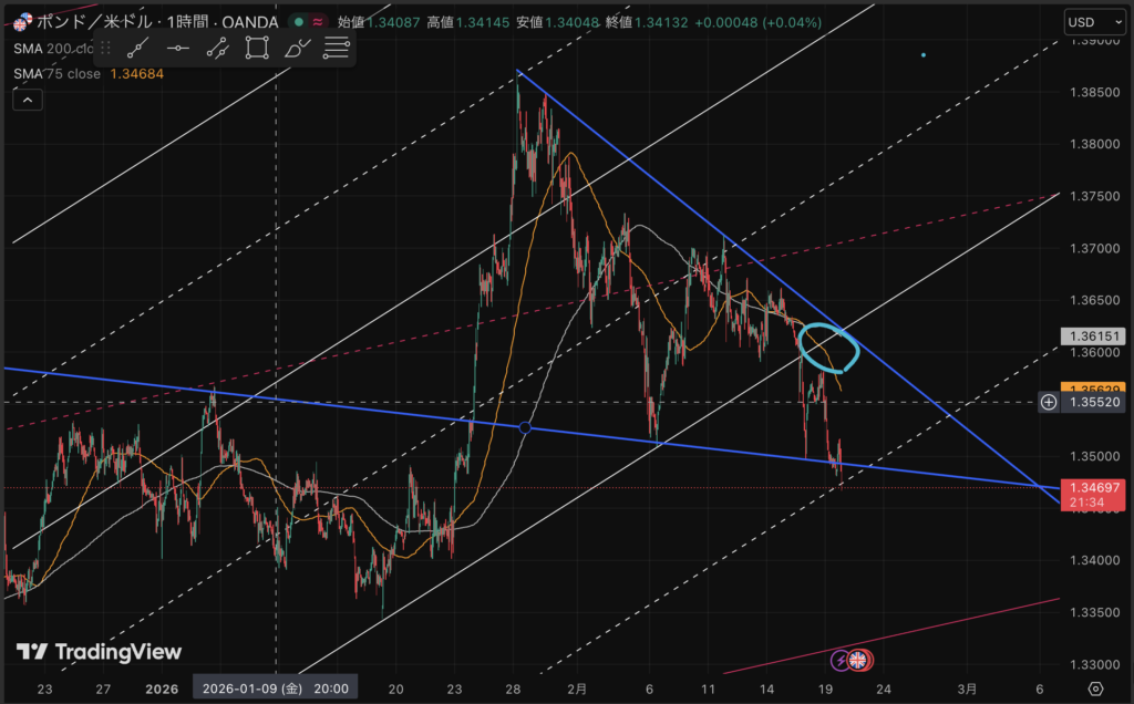 1Hの25SMAタッチで強力な売りが出てきたと。で
