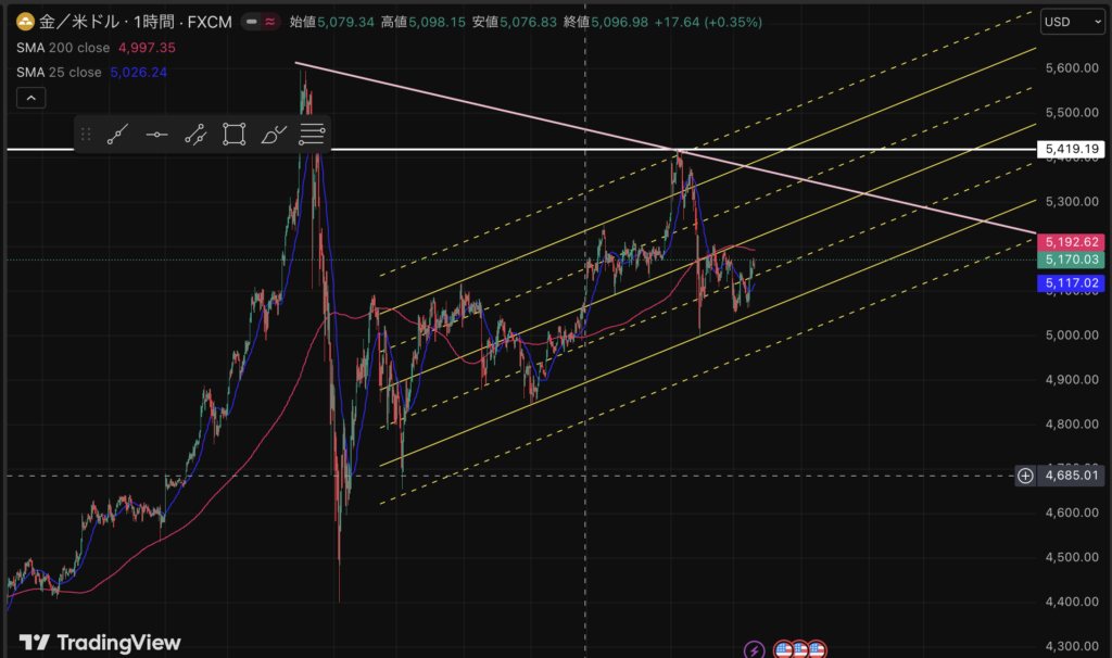 長く続いているトレンドラインをついに割ってきそう(何ならもう割れている?)