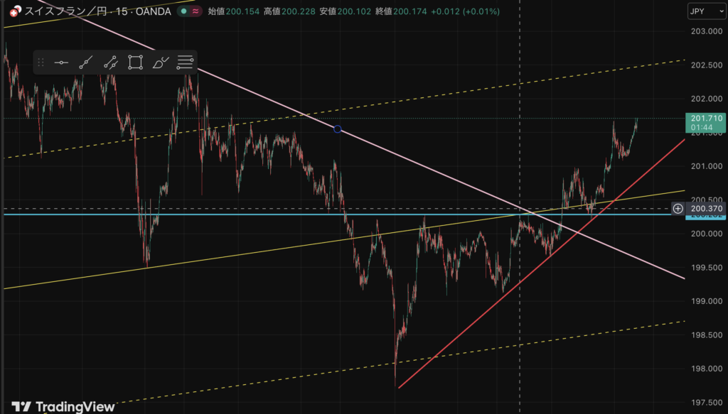 だが、スイスフラン円はドンピシャで反発していき現在上昇中。